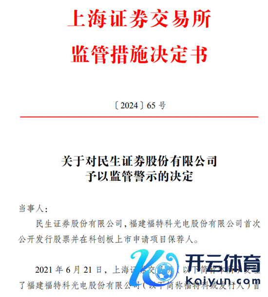 决定书线路,民生证券手脚福特科IPO项想法保荐东谈主,存在两项保荐职责履行不到位的情形: