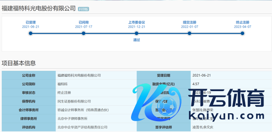 2023年3月,福特科及民生证券提交肯求,主动裁撤注册肯求文献。同庚4月,证监会决定对福特科隔断刊行注册门径。
