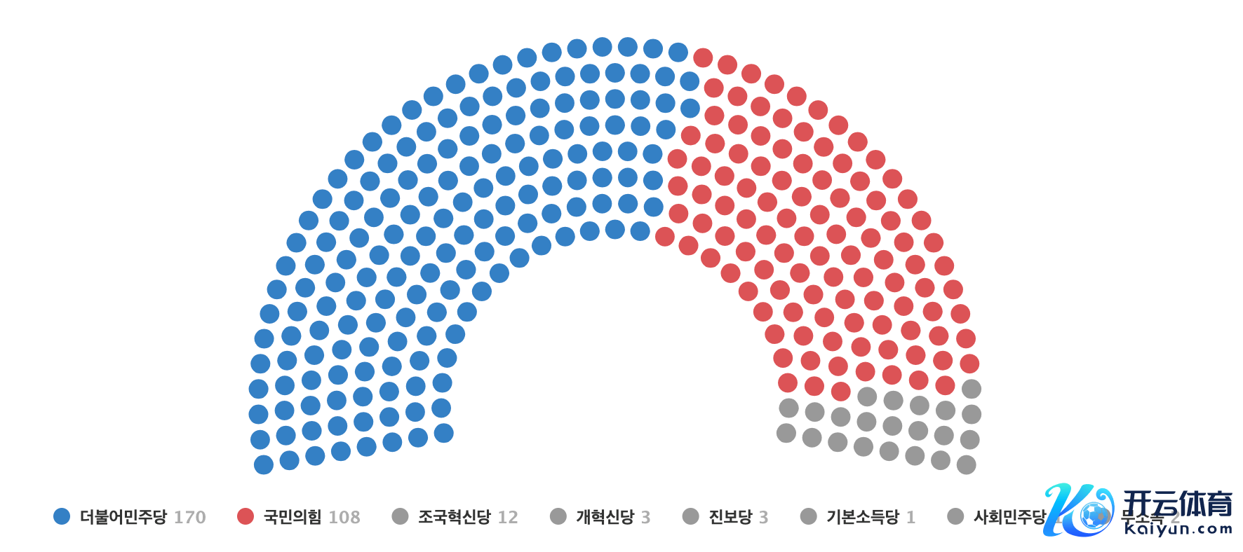 △韩国国会议席分离:蓝色为第一大握政党共同民主党,红色为握政党国民力量党(府上图)