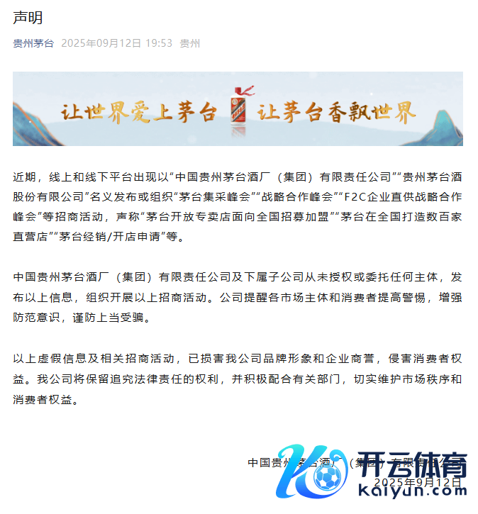 茅台集团:未授权或请托任何主体发布或组织“茅台集采峰会”等招商活动开yun体育网茅台集团:未授权或请托任何主体发布或组织“茅台集采峰会”等招商活动