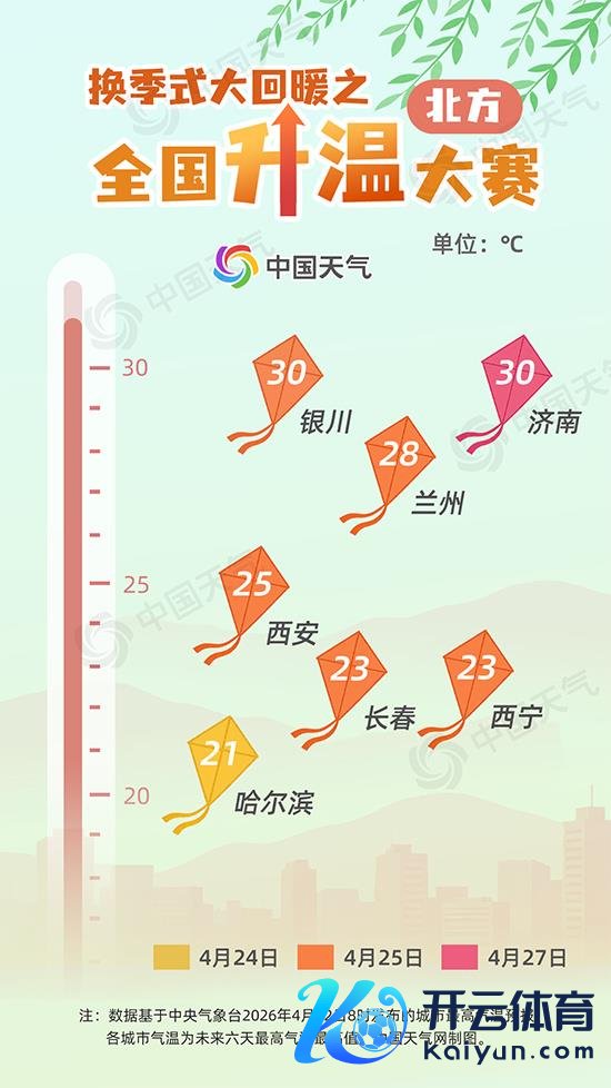 本周我国多地气温将呈现低开高走的趋势,在降温赓续律例后开yun体育网,一场遮蔽南北的“升温大赛”行将拉开帷幕,周末(4月25日至26日)前后华北至长江中卑劣等地温和达到近期顶峰。现推出“寰球升温大赛”,看哪些所在将冲击30℃,那里升温如换季。